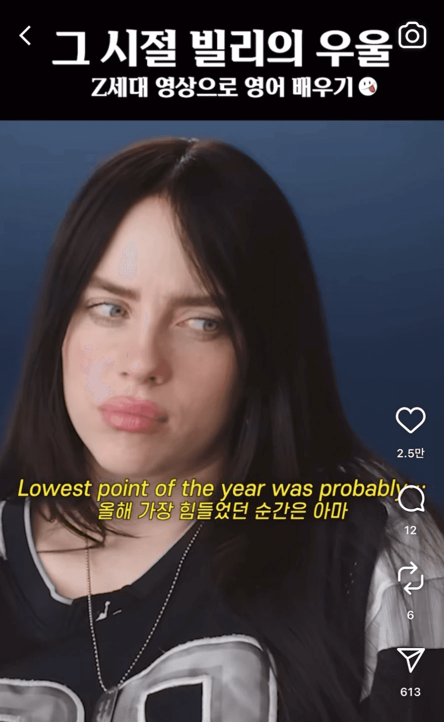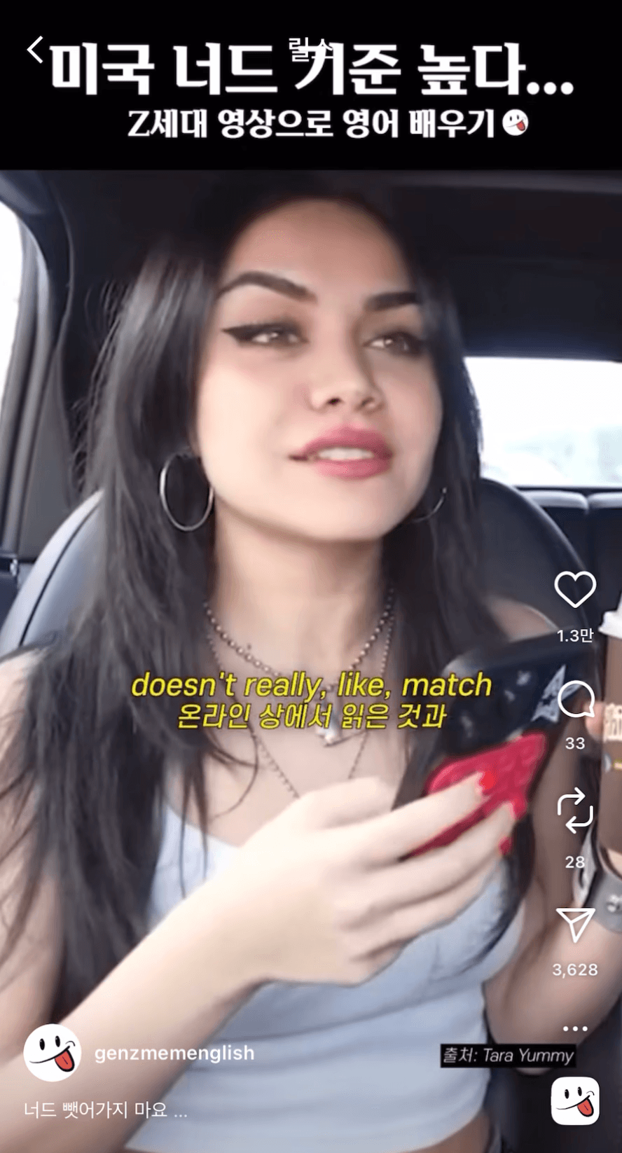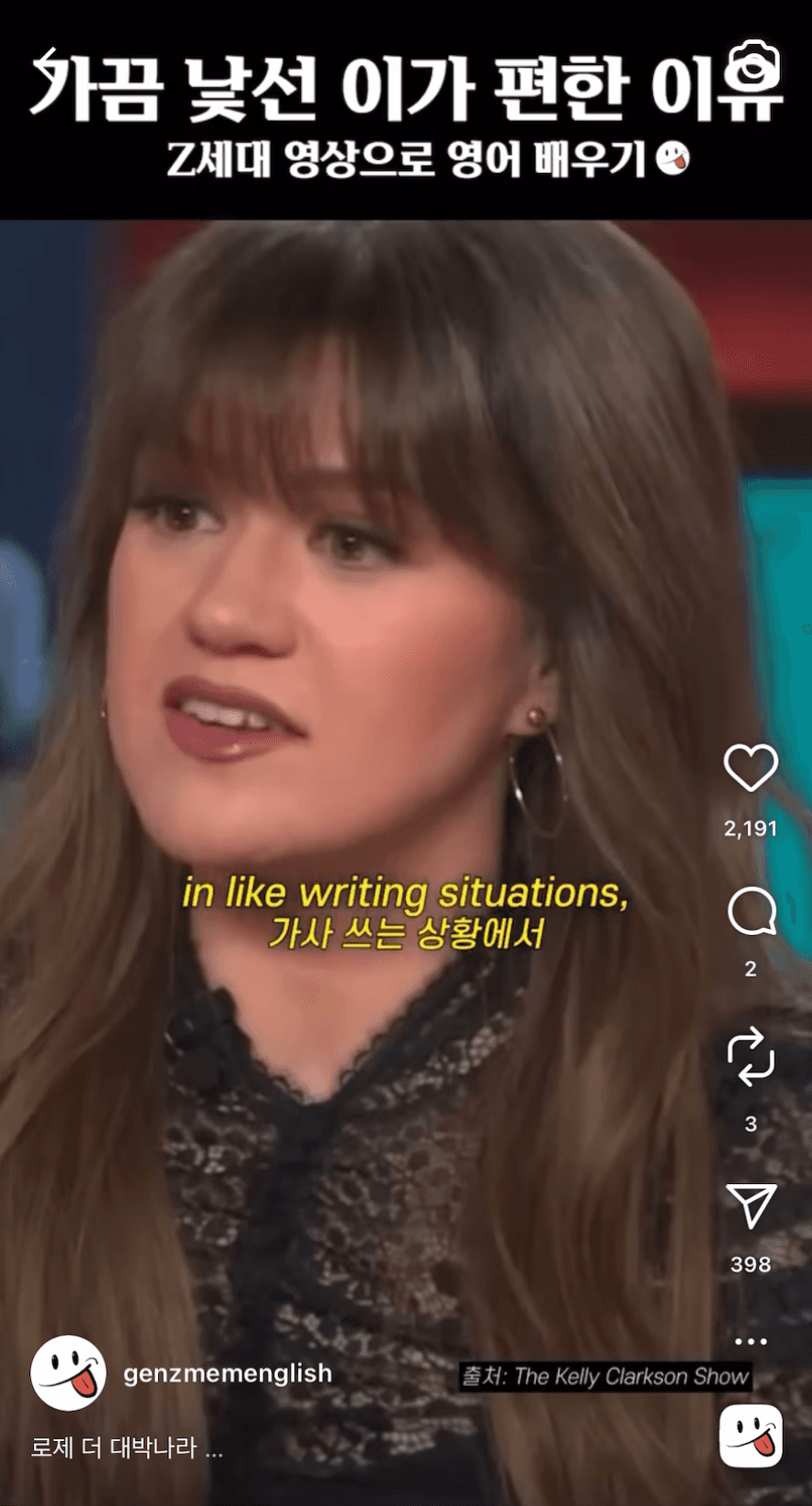 해외 유명인들의 자연스러운 대화를 번역하는 숏폼 채널 젠지밈(@genzmemenglish)을